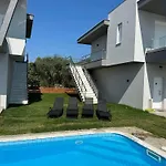 Olive Luxury Apartment har vardagsrum, balkong och terrass, luftkonditionering och tvättmaskin, samt utsikt över poolen. Gästerna på det här boendet erbjuds ett badrum med hårtorkar, badlakan och handdukar. Du har också tillgång till en separat toalett och en dusch.